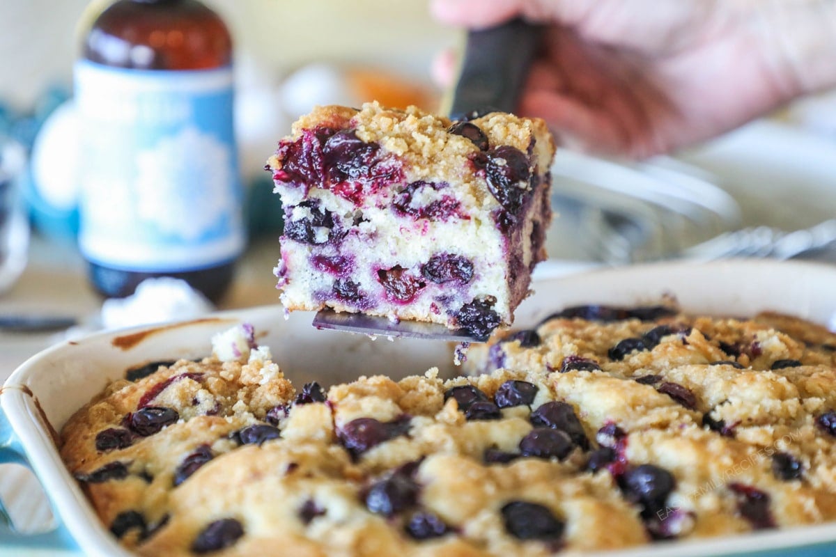 This Blueberry Breakfast Cake recipe is as simple as promised! Just a 10 minutes of prep for a family friendly breakfast.
