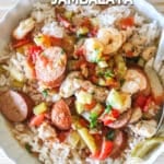 Jambalaya is a beloved, one pot Louisiana creole dish. It blends rice with various meats such as chicken and sausage, seafood, the “holy trinity” of vegetables (onion, celery and green bell pepper), tomatoes, spices and cajun seasonings. Everything is “jumbled” or “all mixed up,” hence the “jambalaya” name. For this easy recipe, we’re preparing the rice separately so it doesn’t get mushy in the slow cooker. But the bold cajun flavors are 100% carrying the tradition behind this dish!