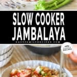 This Slow Cooker Jambalaya recipe is as simple as promised! Just combine all ingredients into a crockpot and cook for 3.5 hours for a family friendly dinner.