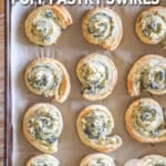 - Prep spinach mixture in advance – You can prep the filling mixture up to 3 days in advance. Simply spread it on your pastry dough, slice and place in oven when you’re ready to heat and serve.